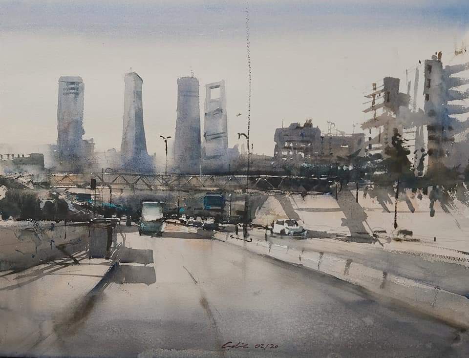 En esta ocasión pintaremos el paisaje urbano de la capital y trabajaremos las distintas atmósferas del día junto a la vibración y el movimiento urbano. Realizaremos un total de 3 ejercicios completos paso a paso.