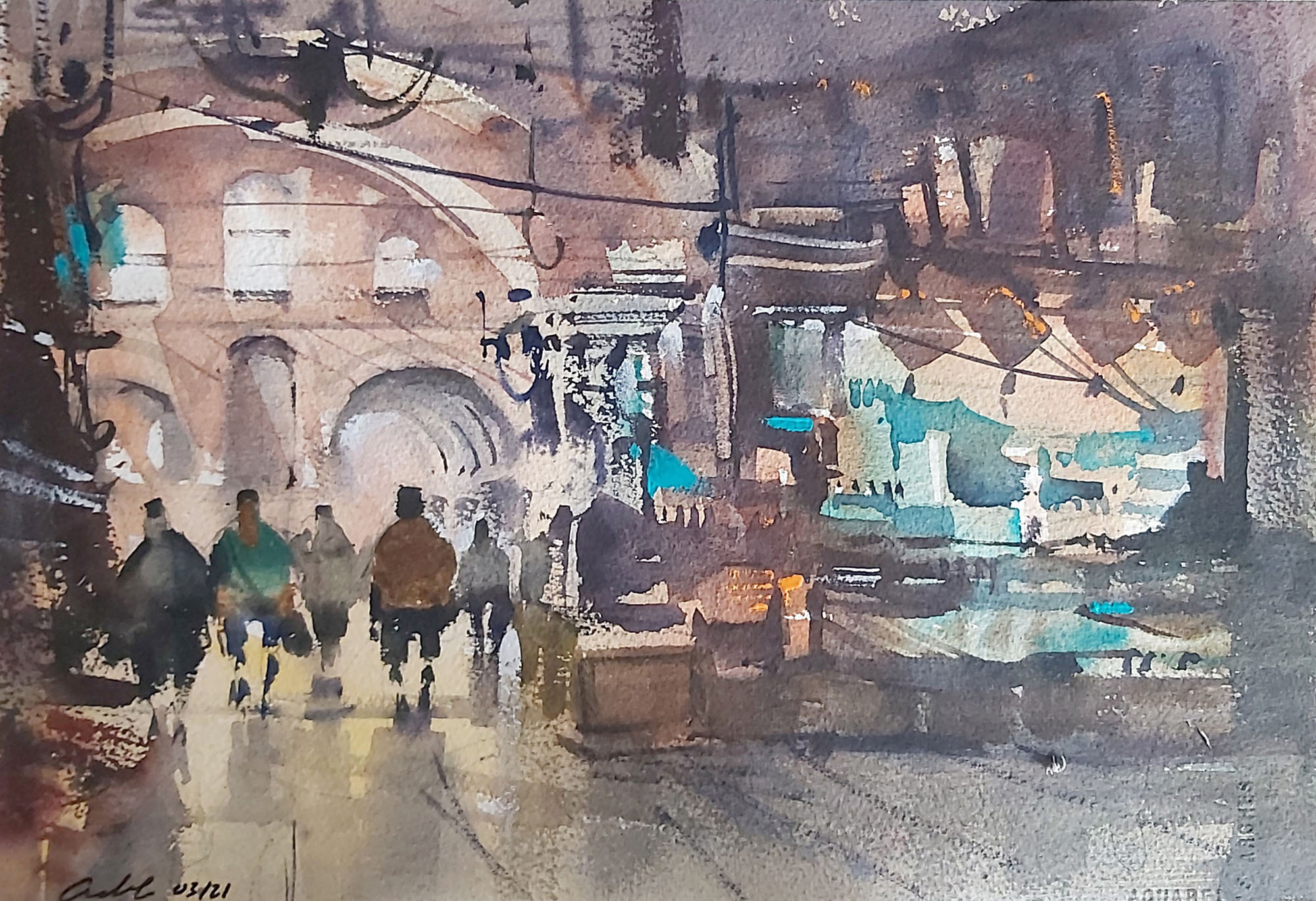 Acuarela: Gran bazar Estambul