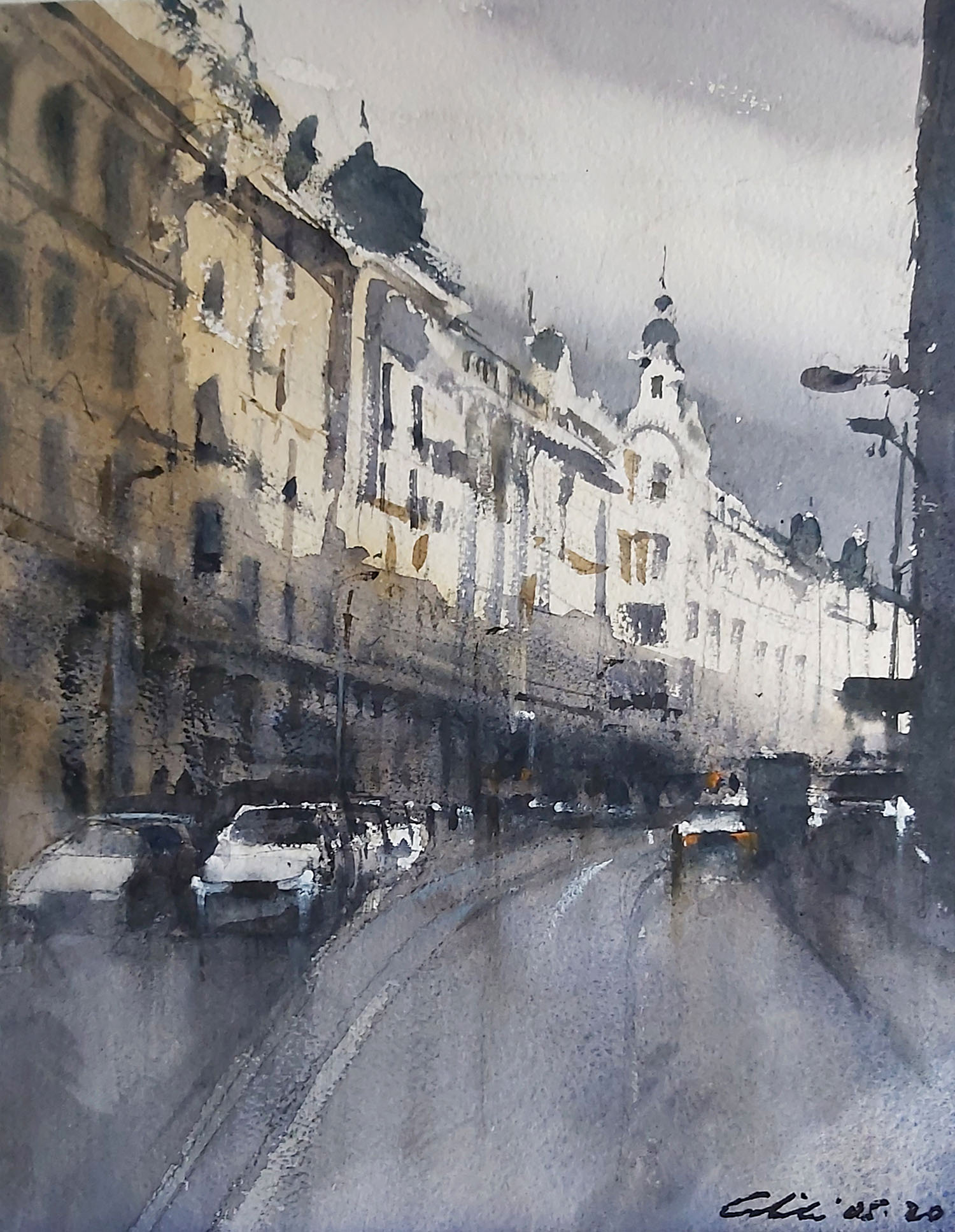 Acuarela: Madrid día oscuro