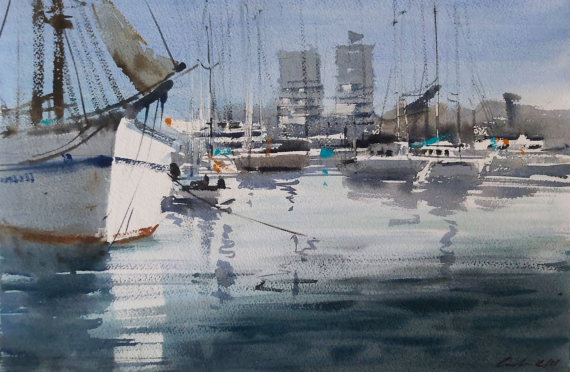 Acuarela: Marina de Barcelona